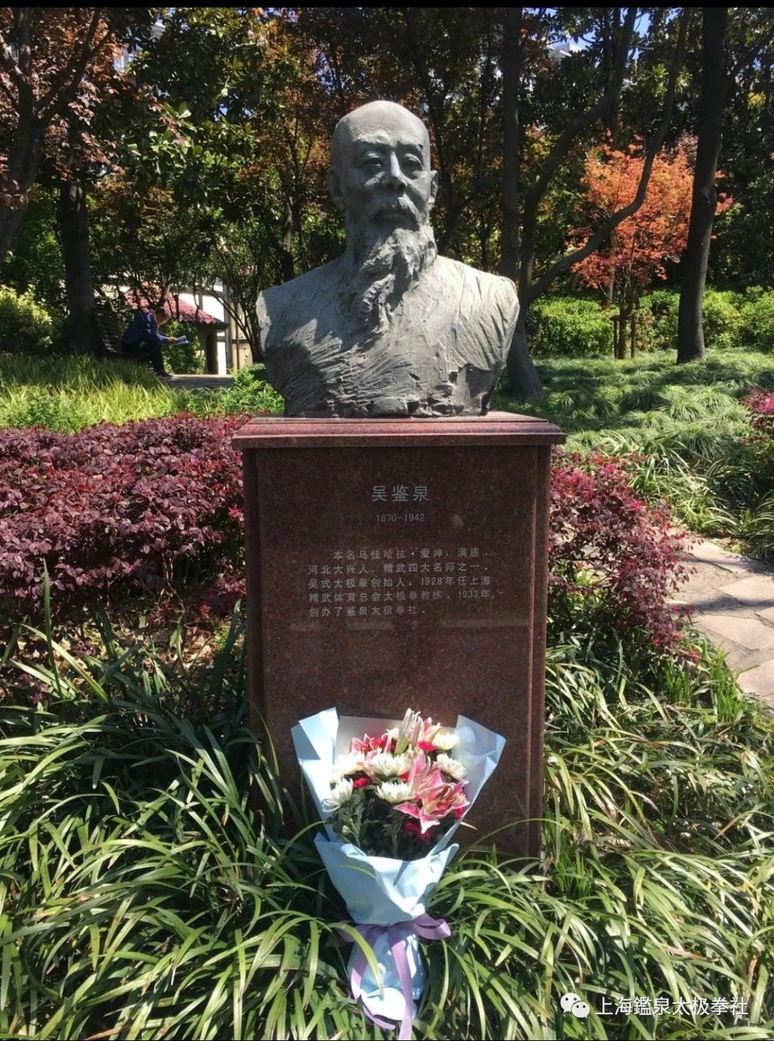 4月5日,在精武公园内,上海精武体育总会代表在吴鉴泉宗师像前敬献鲜花