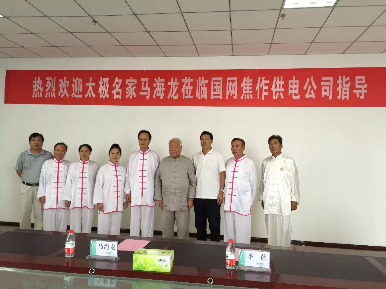 马海龙名誉社长受邀参加焦作第八届国际太极拳比赛交流大会2015年8月20日,上海鉴泉太极拳社名誉社长马海龙以吴式太极拳嫡传第四代传人身份受邀参加焦作第八届国际太极拳比赛交流大会。 焦作欲打造太极圣地之名,新建焦作太极体育中心,内设太极馆、健身馆和游泳馆,馆外有可容纳万人的太极广场。而太极馆内不仅有比赛场馆、太极文化展示馆,还特为此次参加大会的九位太极拳大师设立了大师工作室。 开幕式上,九位太极拳名家同台表演;大会期间,九位太极拳名家依次登台讲课;并参与“太极拳六进”活动,进学校、进社区、进乡村、进企业、进机关、进军营,与太极拳爱好者交流。