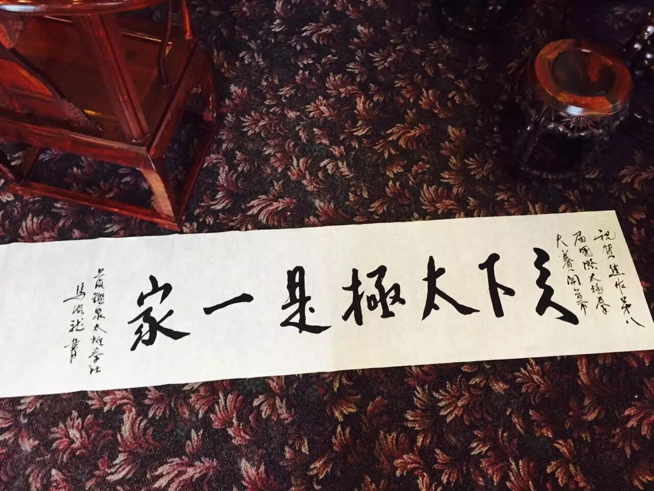 马海龙先生特为此次太极盛事提笔书写:天下太极是一家 此次赛事,国内外参赛者近六千人,并特设太极推手专场。 |